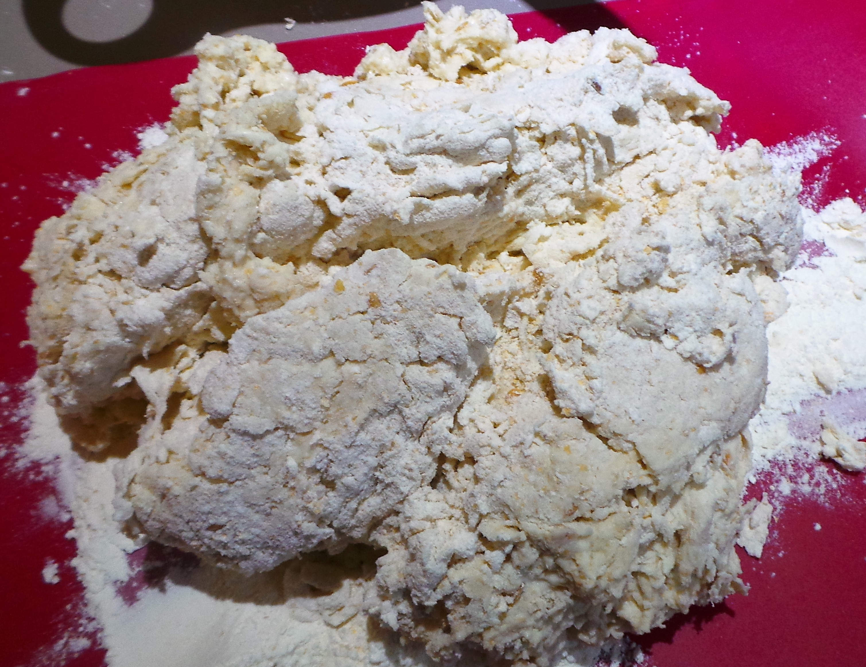 So, grab a bit of chicken and dredge (cover) with the plain flour.