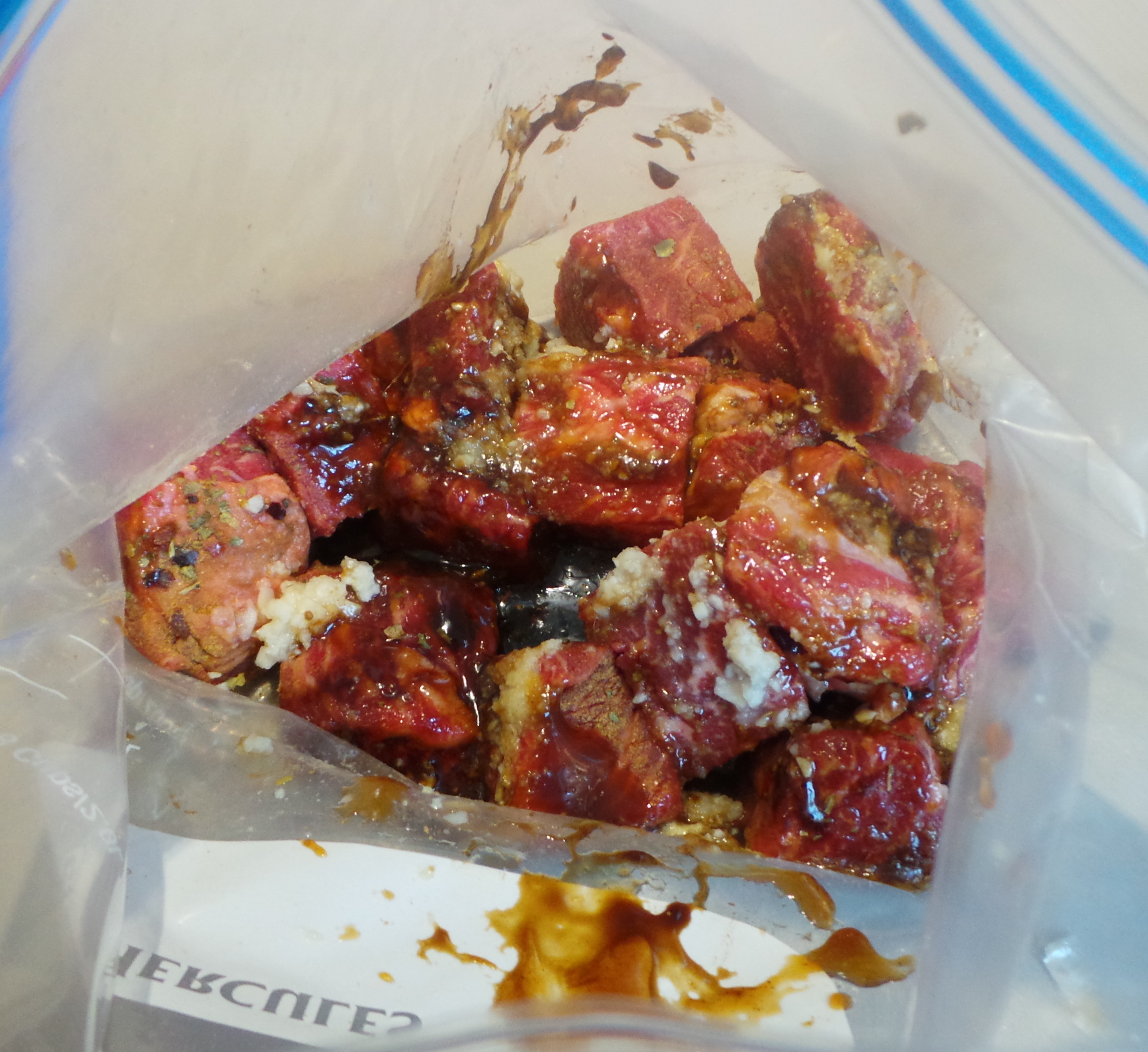 Firstly, get yourself some nice pieces of chuck steak. You don’t need much, really truly. For today’s efforts I used around 750g or 1½ pounds. That will make 2 meals for us or feed four – whichever math you prefer.