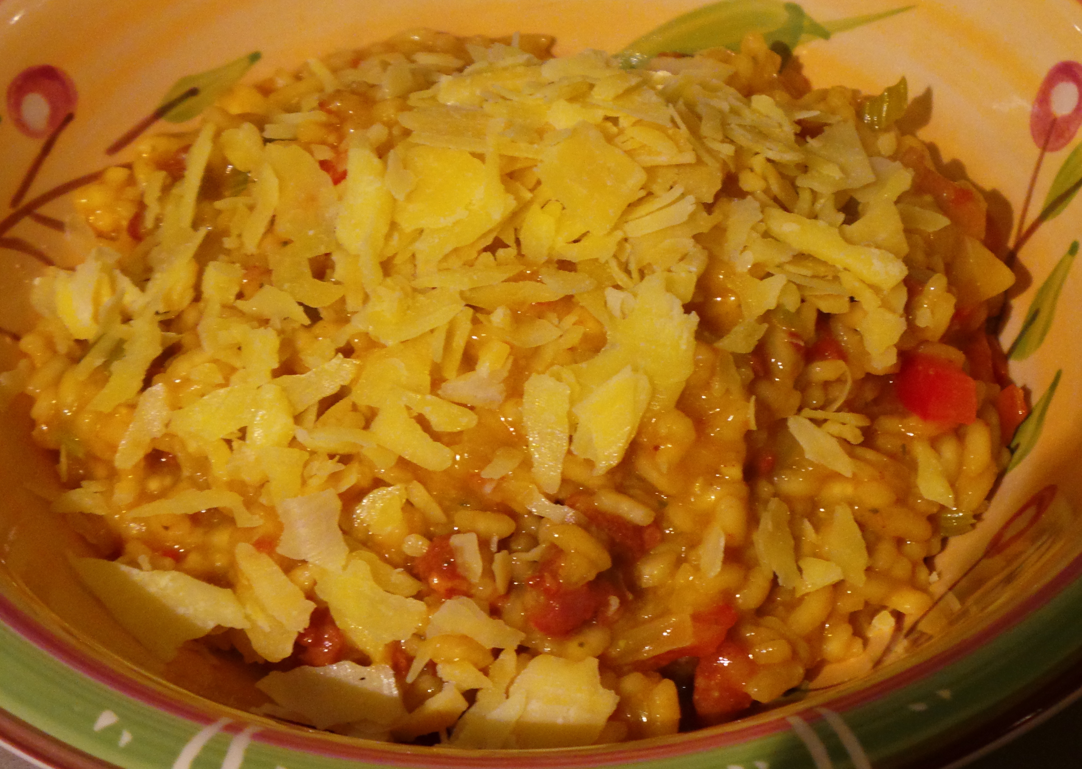 I serve the rice, then add a sprinkling of shaved parmesan cheese and a grinding of black pepper and it is perfetto!