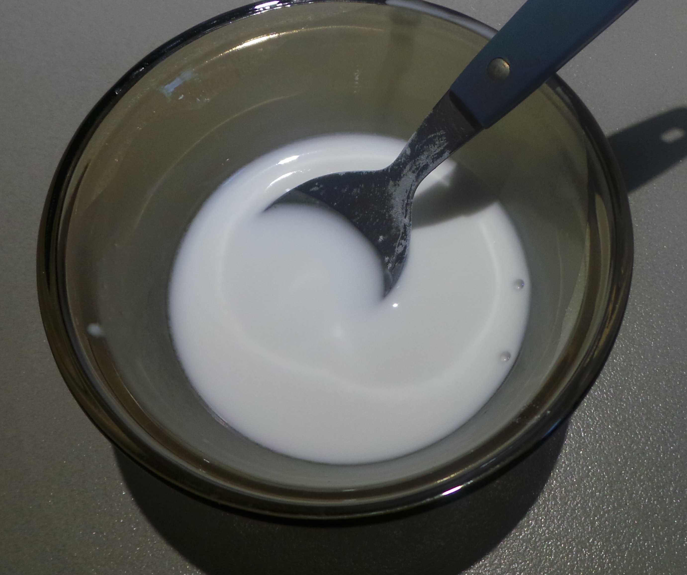 Take a few teaspoons of cornflour and place in a small bowl, glass or coffee cup. Break up any lumps with the back of a teaspoon.