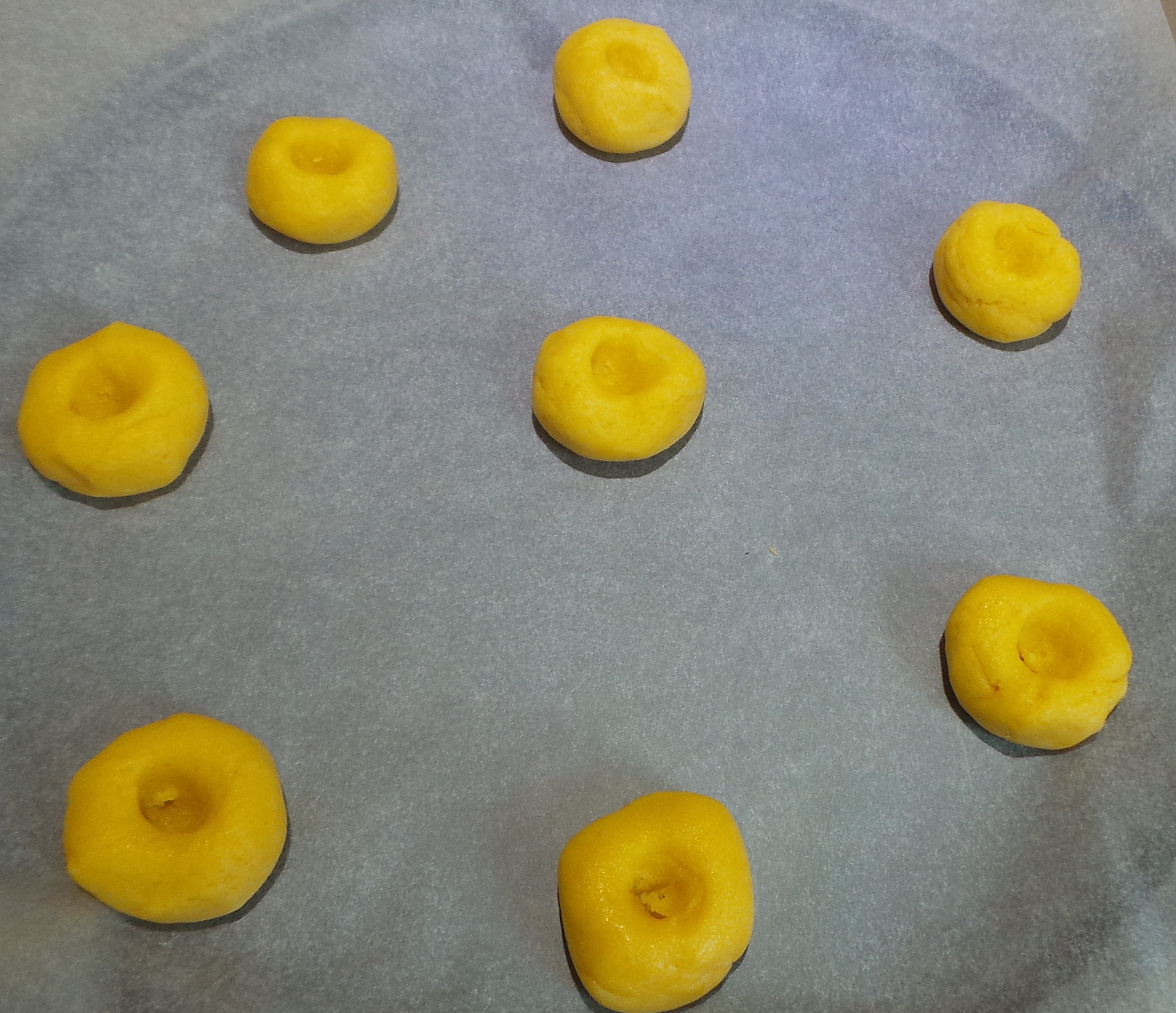 Then, drop rounded spoonfuls onto a lined baking sheet and bake for 8-10 mins.