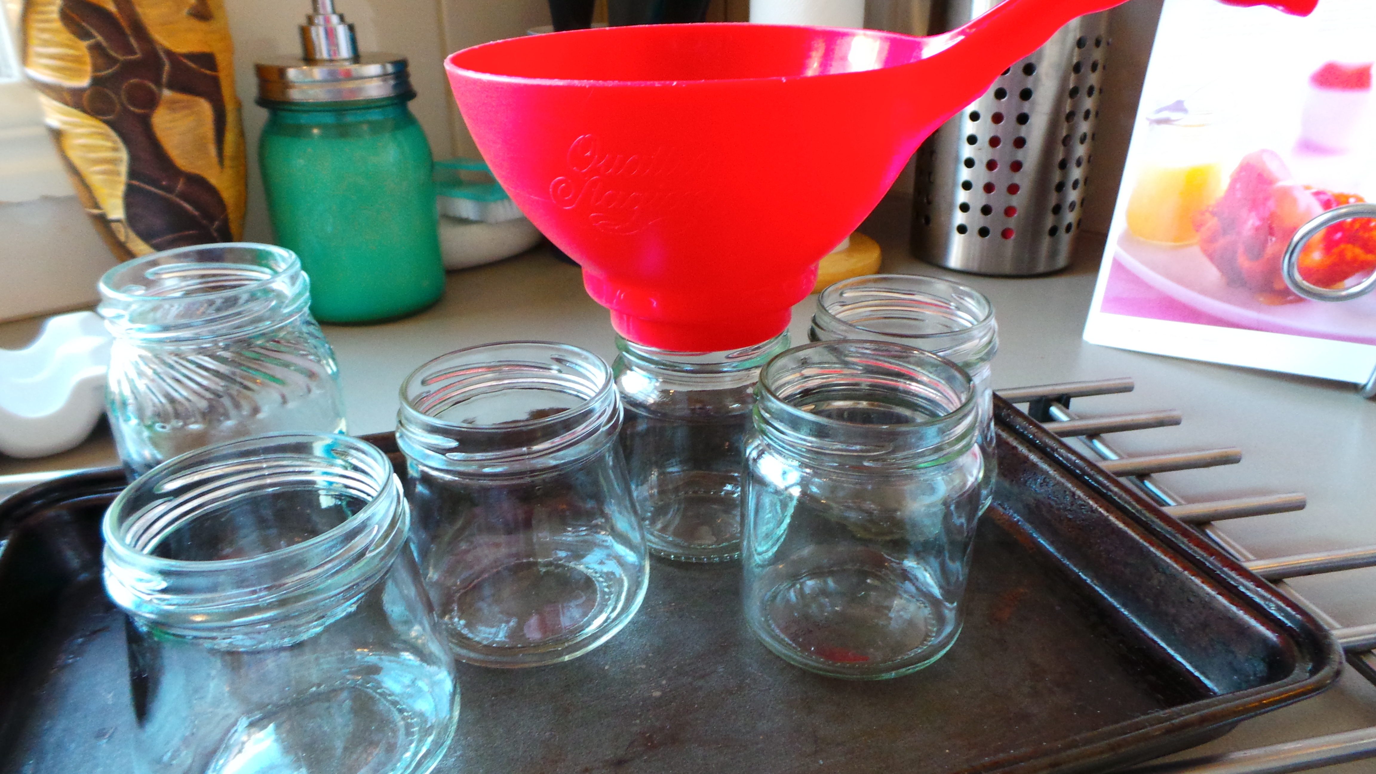 Alternatively, reuse small jam jars that you’ve taken great care to sterilise.