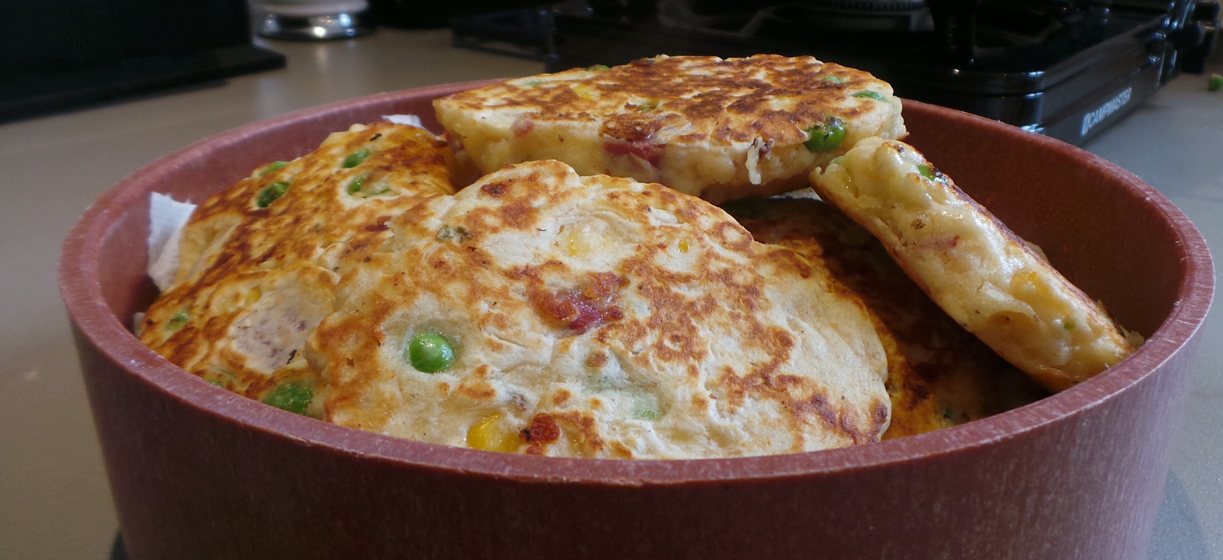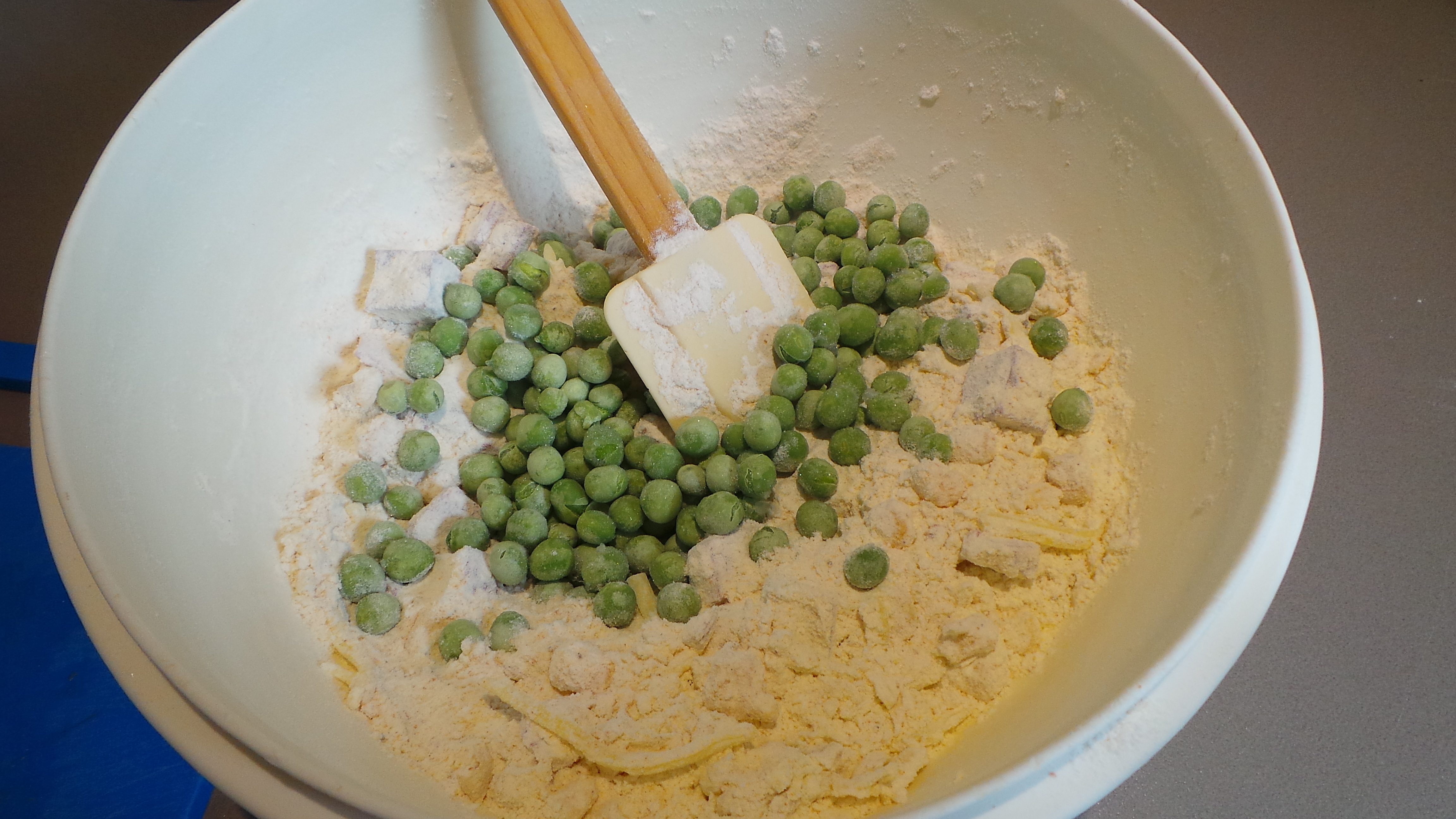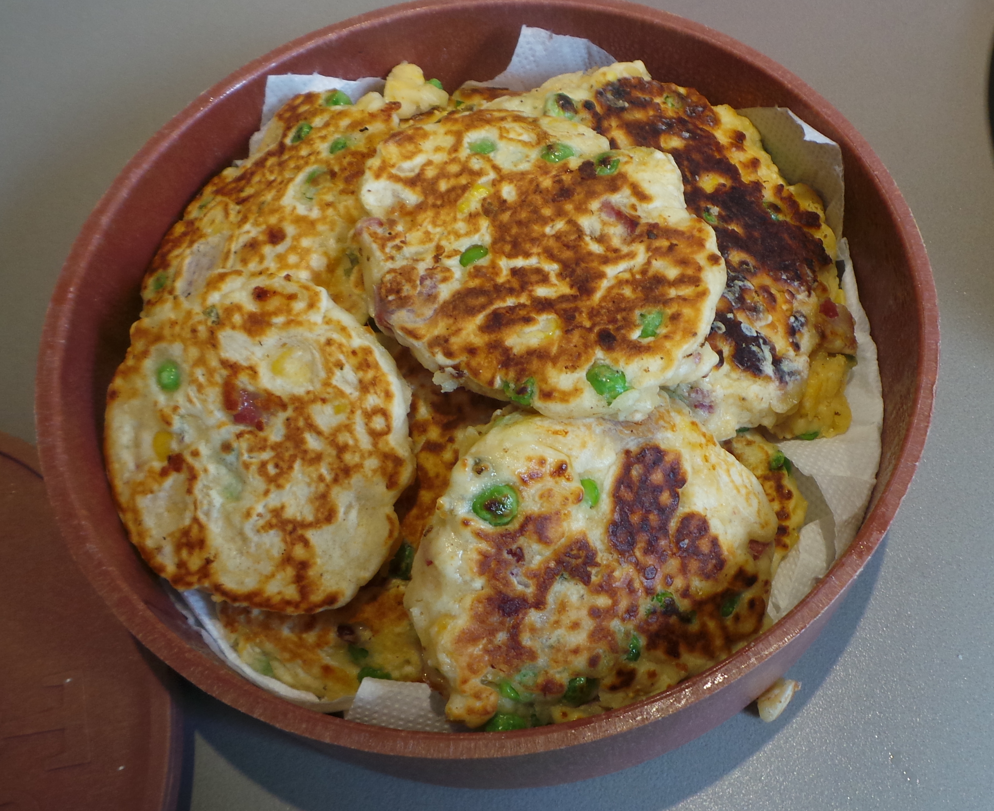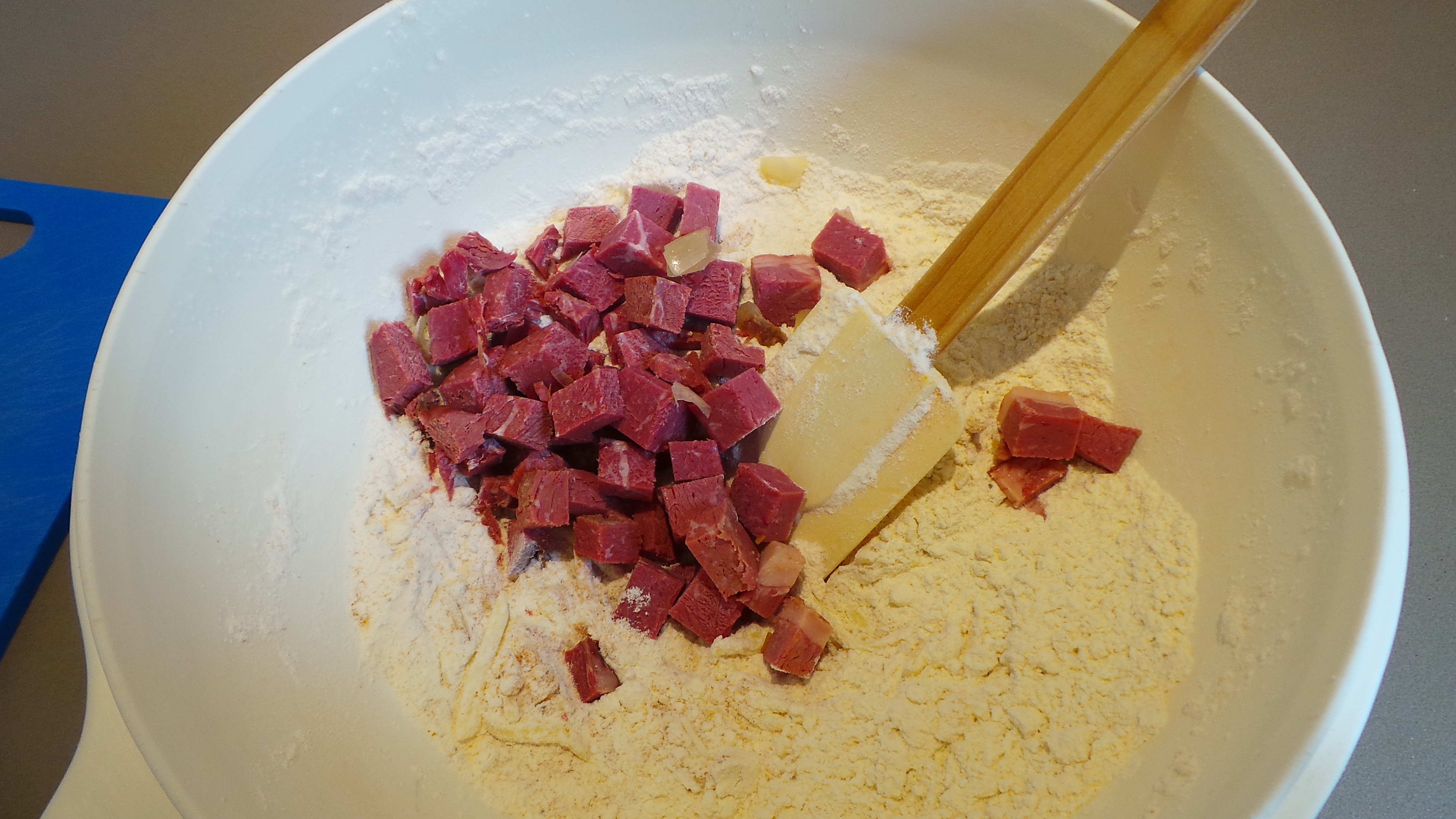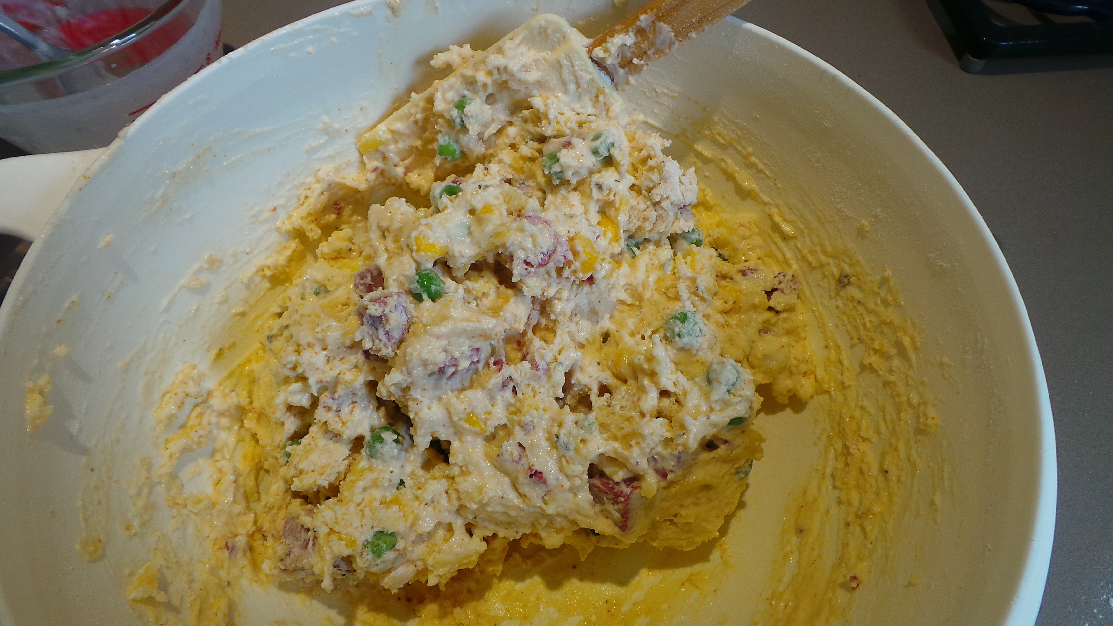 That was all mixed through quite thoroughly, then the red capsicum was diced and added. I was glad it was in there when I saw the finished products as it gave a pop of colour to something that might have been too beige.