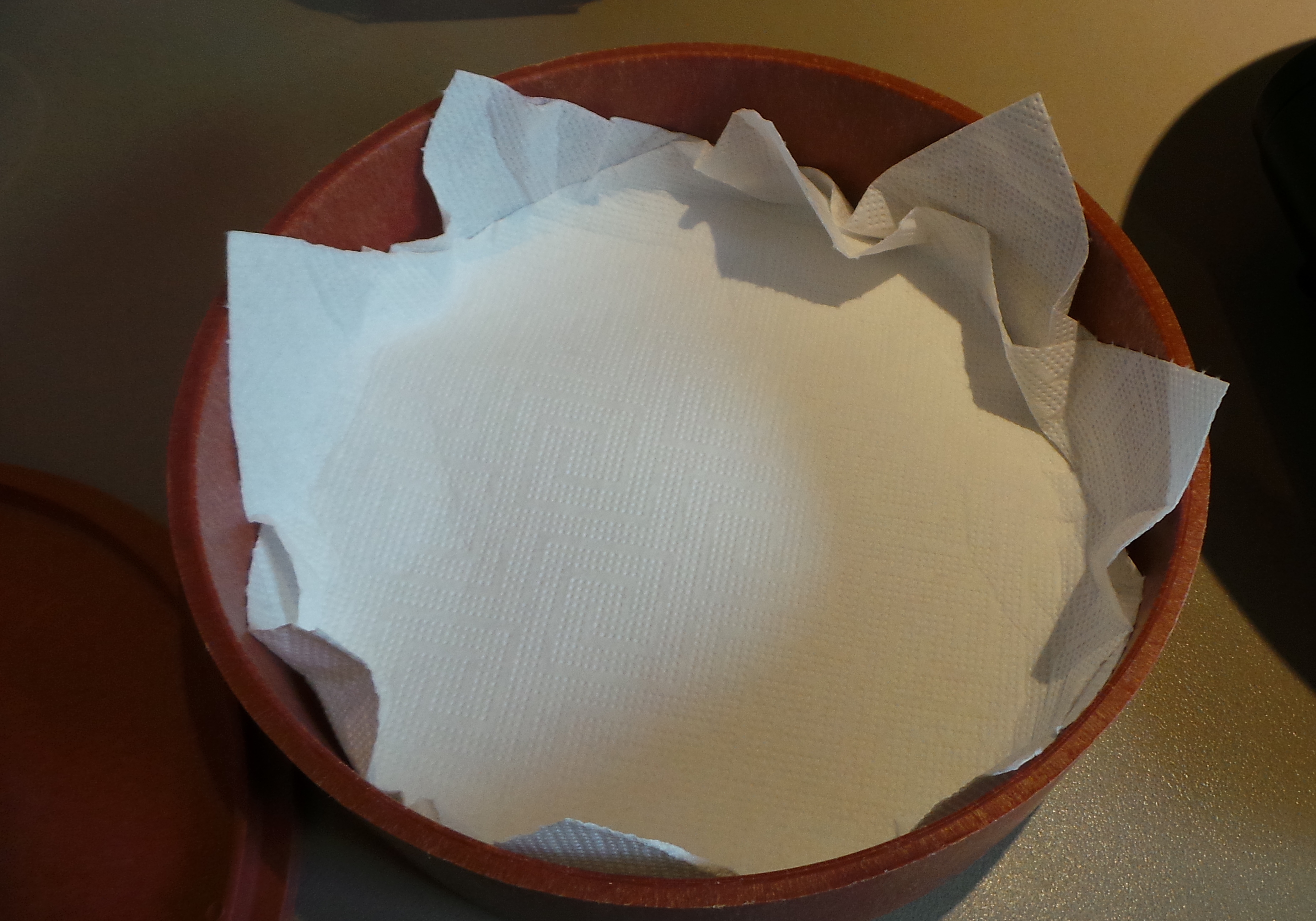 I have one for tiny little cupcakes/muffins that I rarely use and which seemed perfect for this, so I retrieved it and then went on the hunt for the paper cases that I knew were in the pantry somewhere…