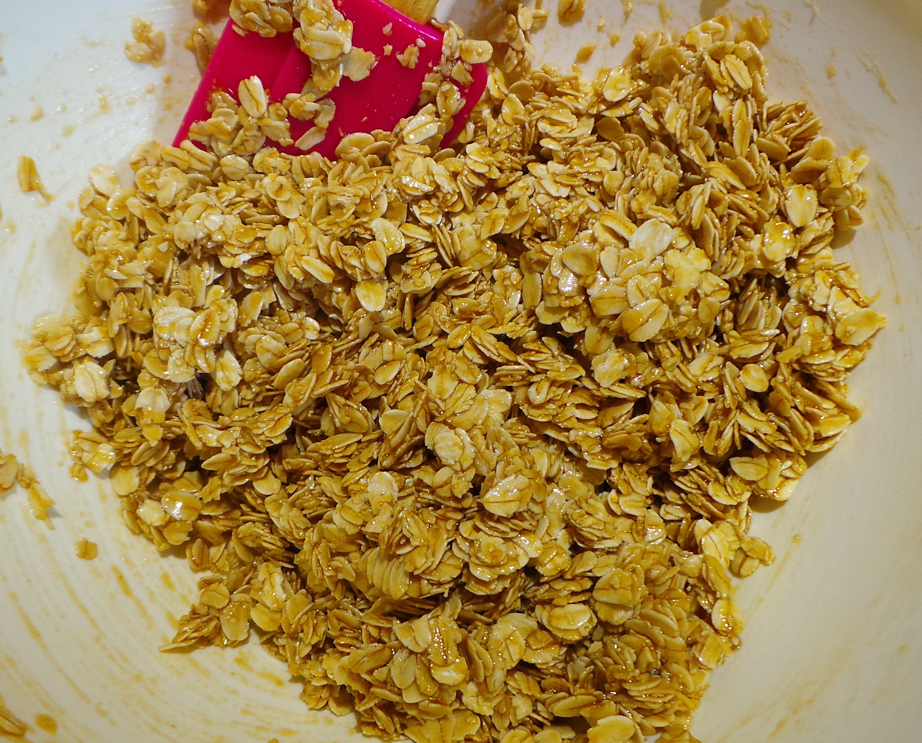 Add this to the mixing bowl and stir until just combined. Then add the rolled oats and repeat.