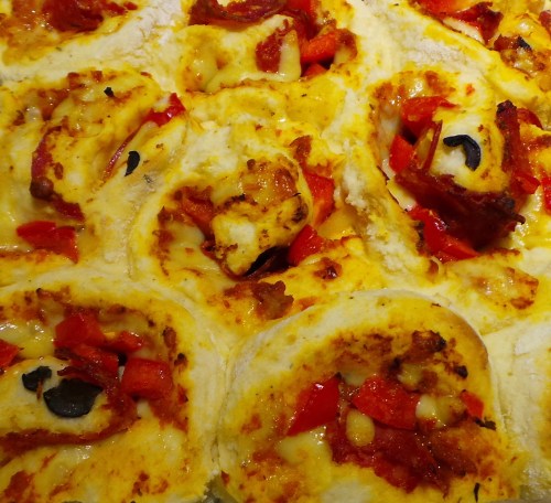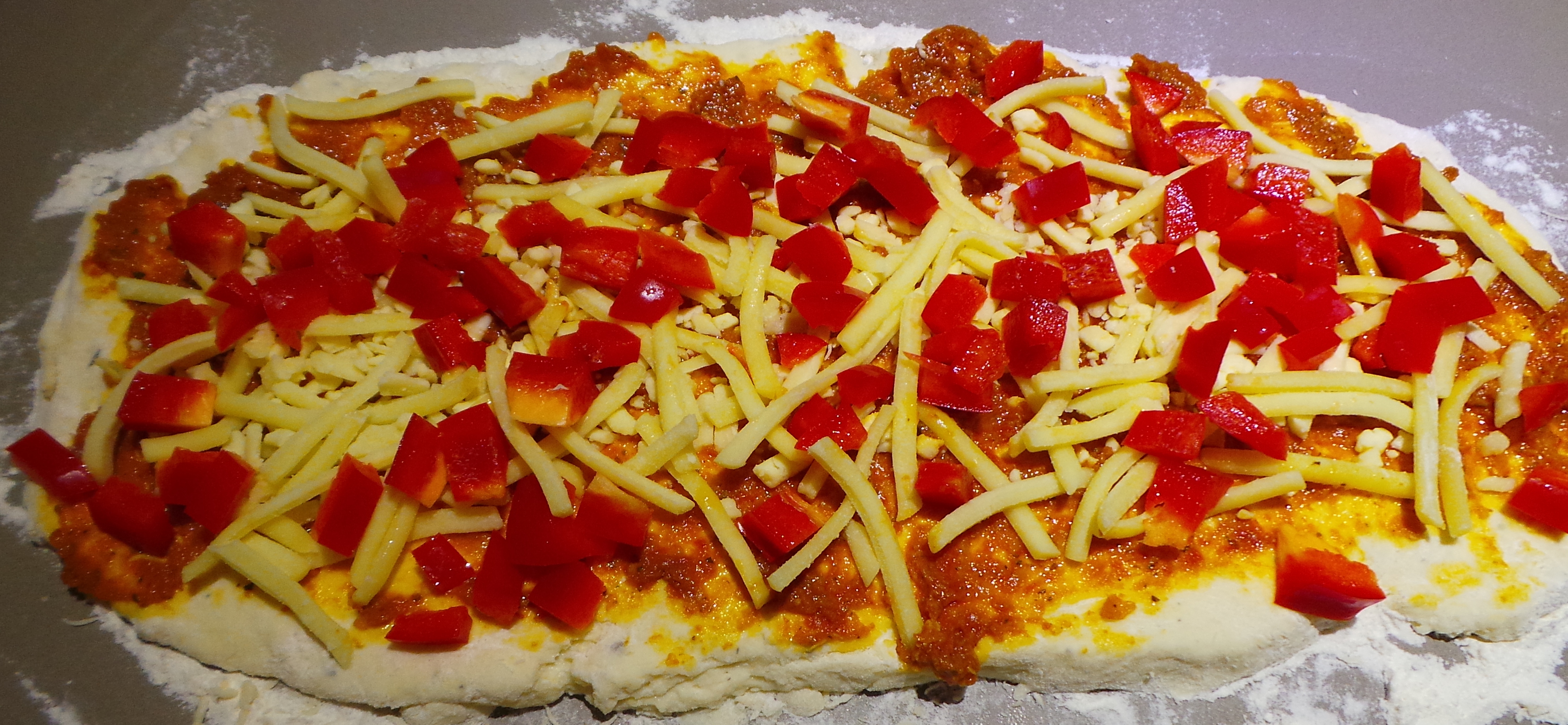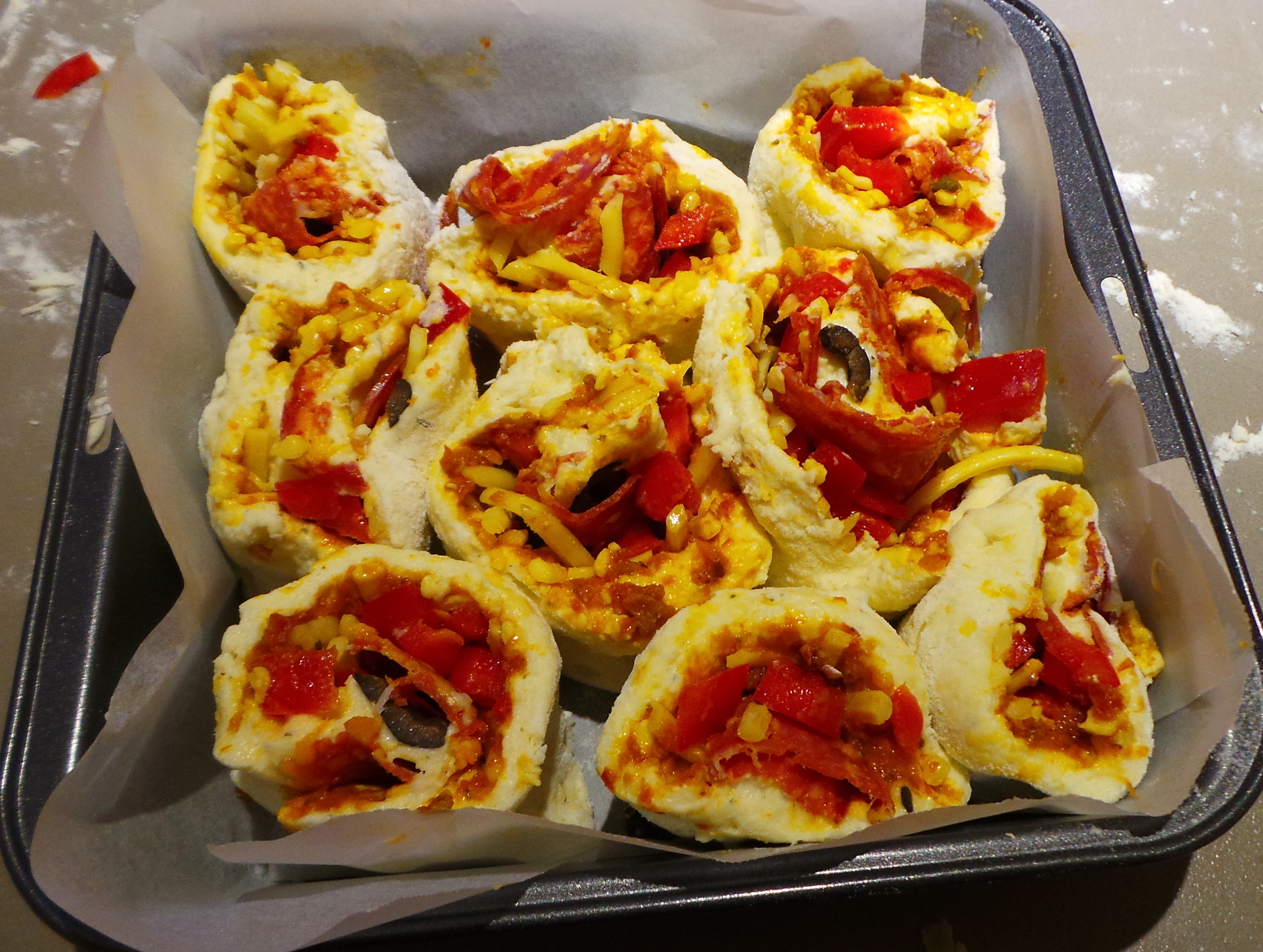 That was all mixed through quite thoroughly, then the red capsicum was diced and added. I was glad it was in there when I saw the finished products as it gave a pop of colour to something that might have been too beige.