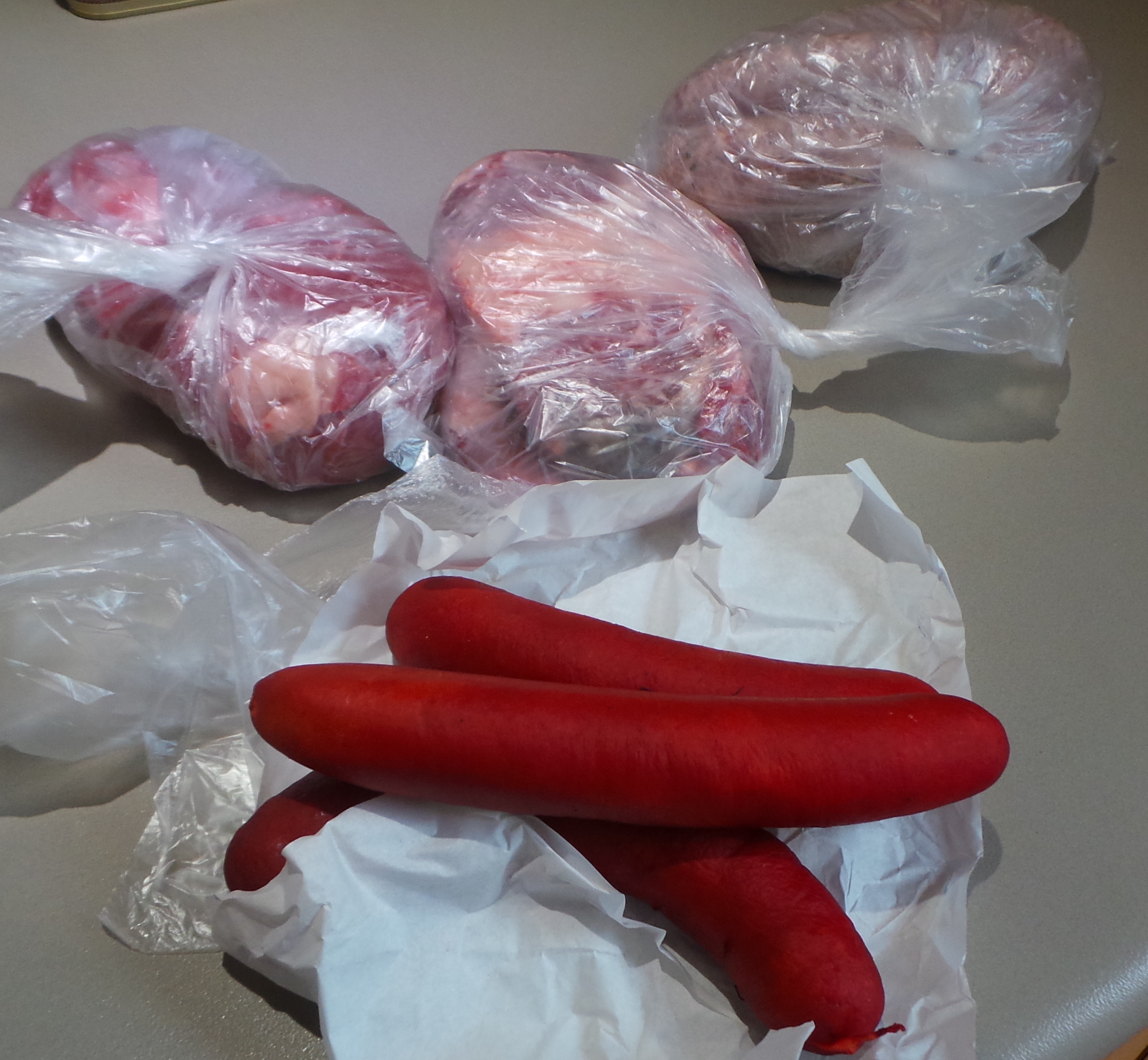 Then I came home and saw to the meat. The chuck steak was diced, placed in a zip lock bag and frozen as is. I already have a few bags of marinaded diced chuck in the freezer, so I thought I’d leave this lot plain for now.